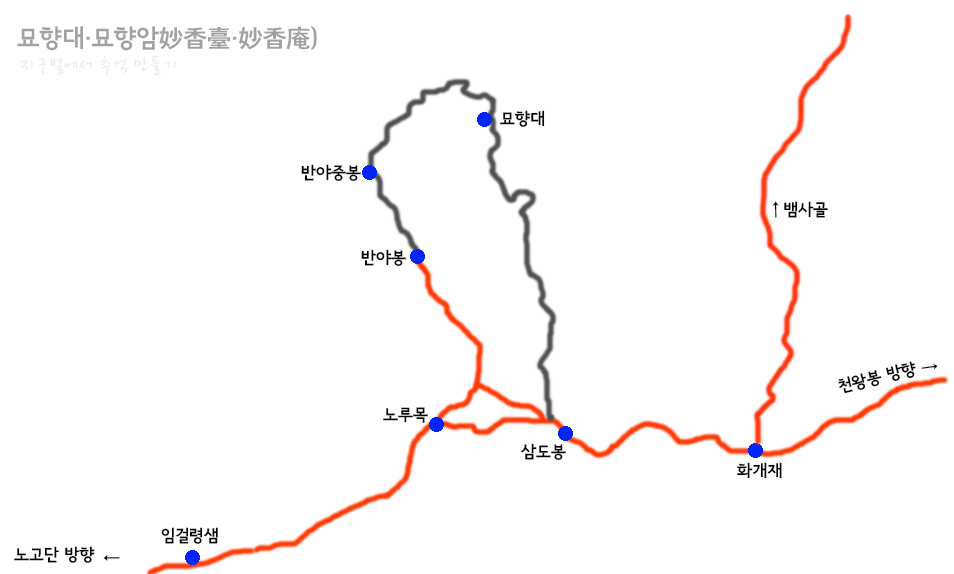 묘향암을 염두에 두는 이가 있다면 이 지도만 하여도 충분히 찾아 갈 수 있을 것입니다.