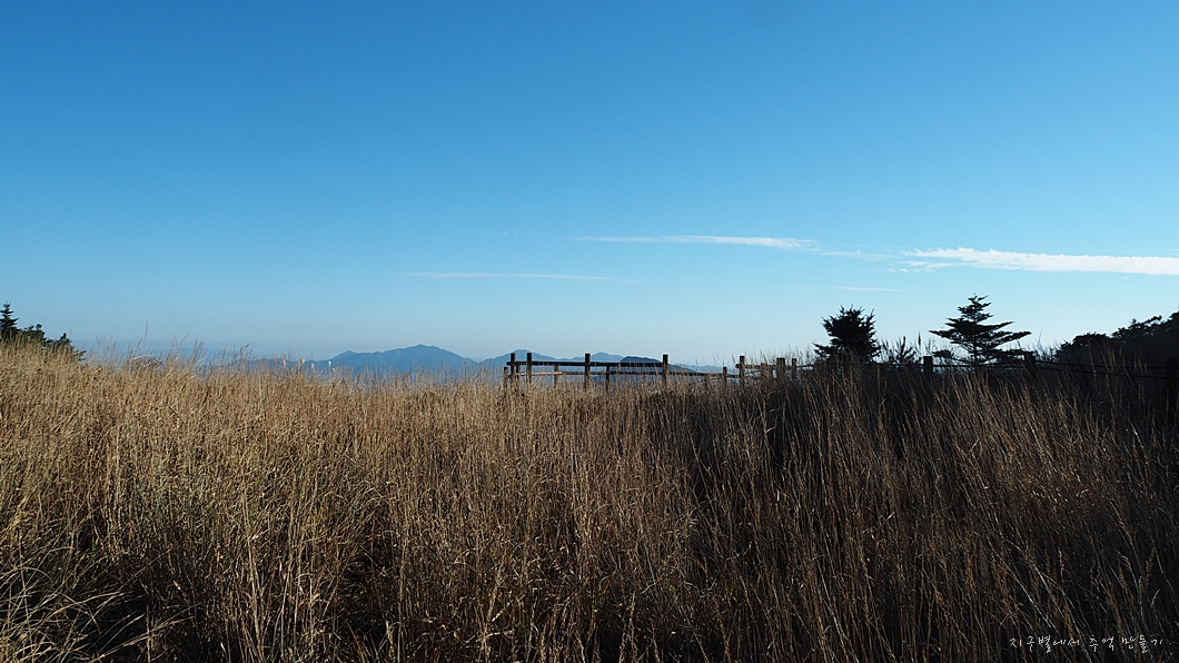 하늘에는 구름띠가 비행운처럼 길게 한 조각 널려 있습니다.