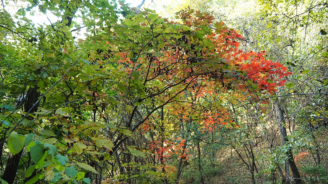 단풍나무 물든 저곳 작은 길로 주욱 올라가니 작은 암자가 있던가?