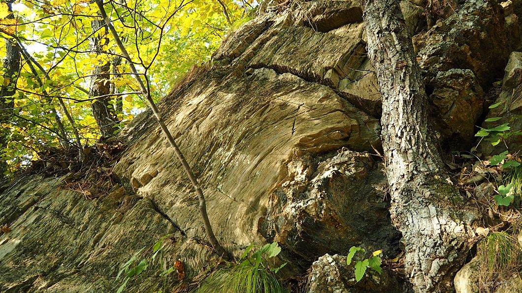 멀리서 보면 고목나무처럼 보이는 바위결이네요.