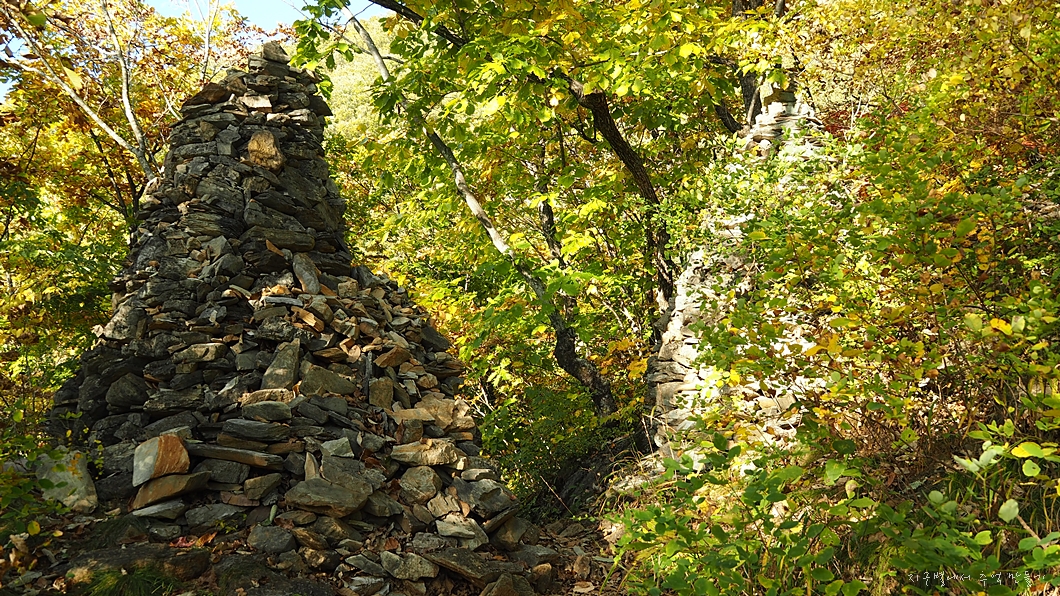 산성터에는 돌탑만 두기 쌓여 있네요.