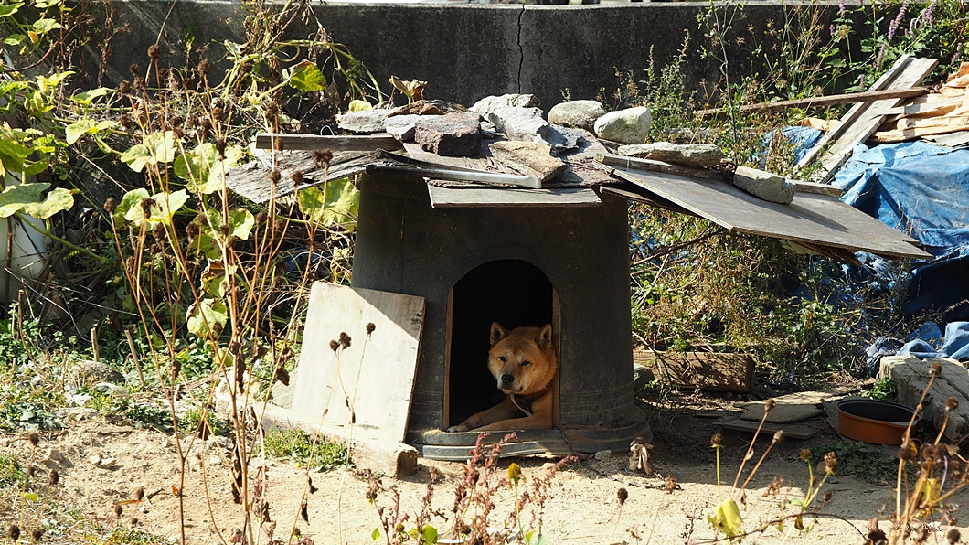 겨우 길가 남의 묵은 밭에 주차를 하는데 가장자리에 자리한 밭주인 비서 견공이 쳐다보는데..