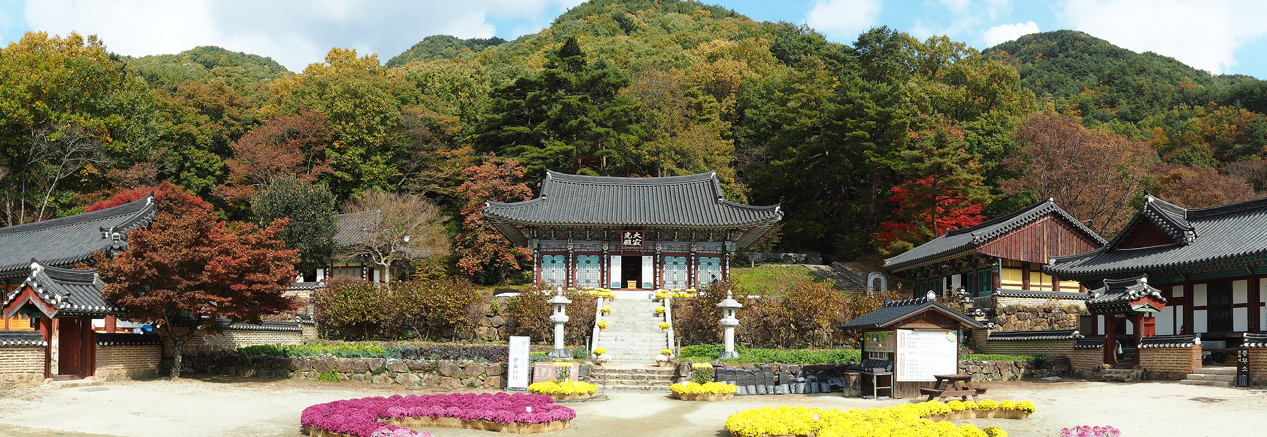이곳저곳 국화 장식물들이 많네요.