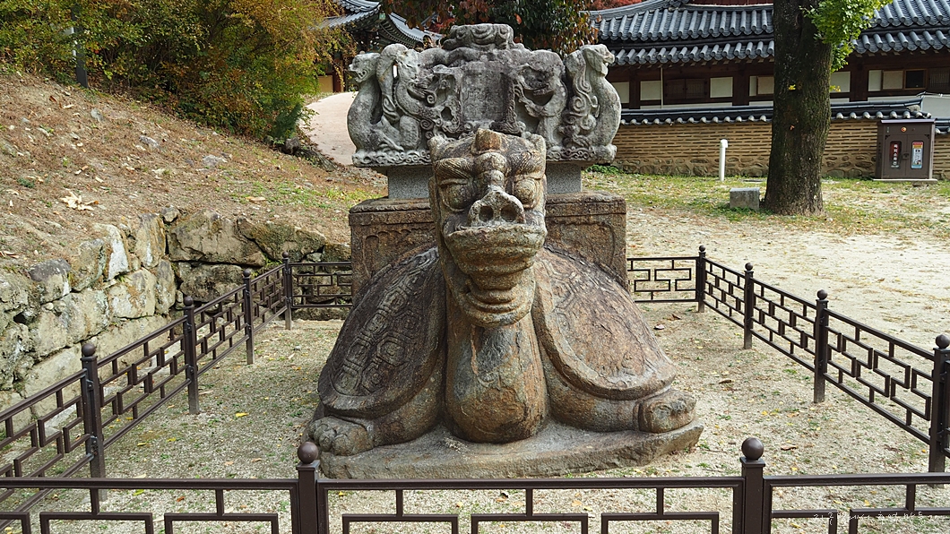 몸통은 거북 모양을 하고 있지만 머리는 수염이 달린 용 모양입니다.