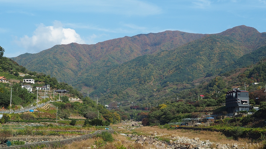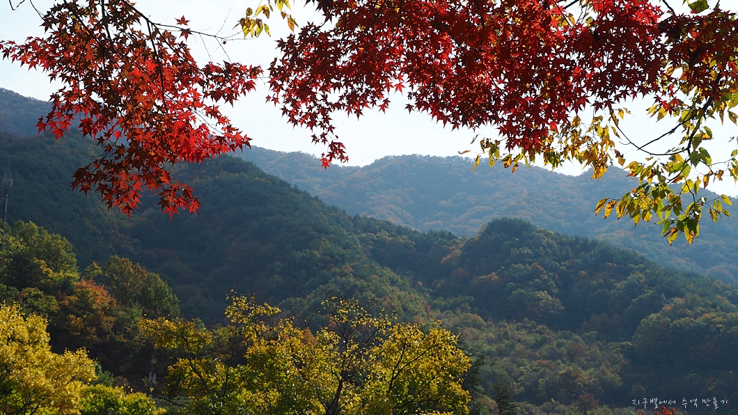 아직 아래쪽에는 초록빛이 남아 있고 산 위에서 서서히 단풍이 내려오고 있네요.