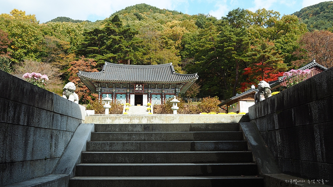 대개의 절집은 절마당으로 올라가는 계단이 절집의 대표 전각인 대웅전이나 대웅보전 또는 대적광전 등과 직선으로 마주 보지 않게 되어 있답니다.