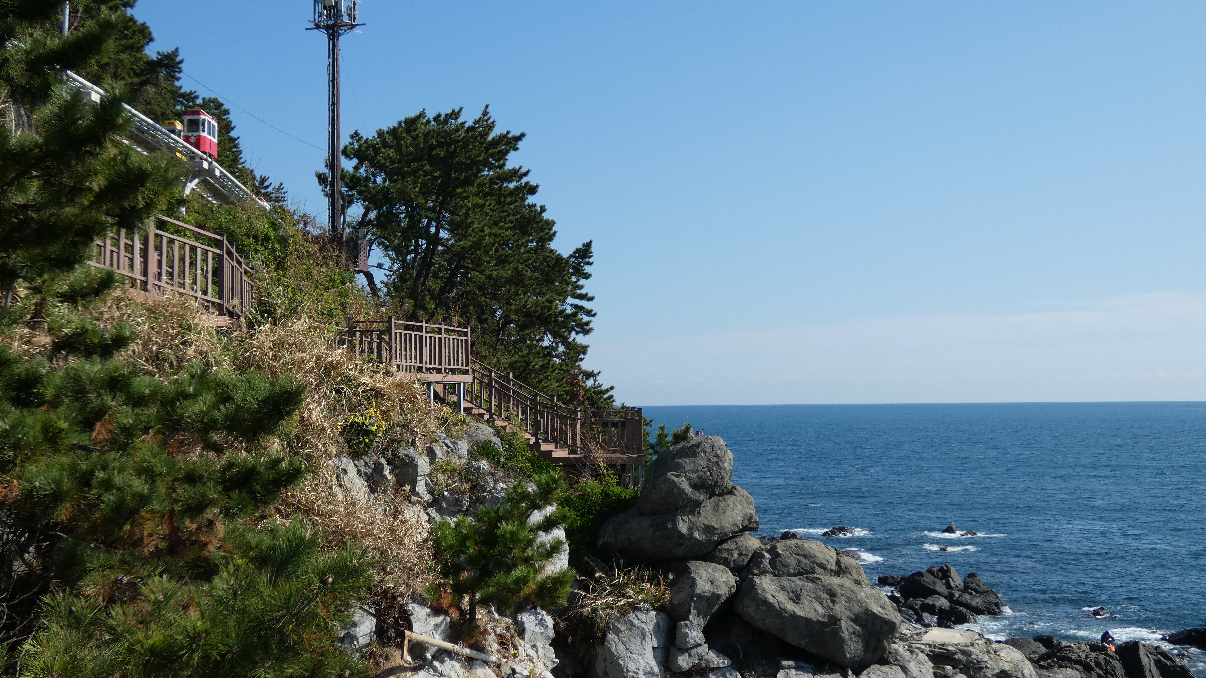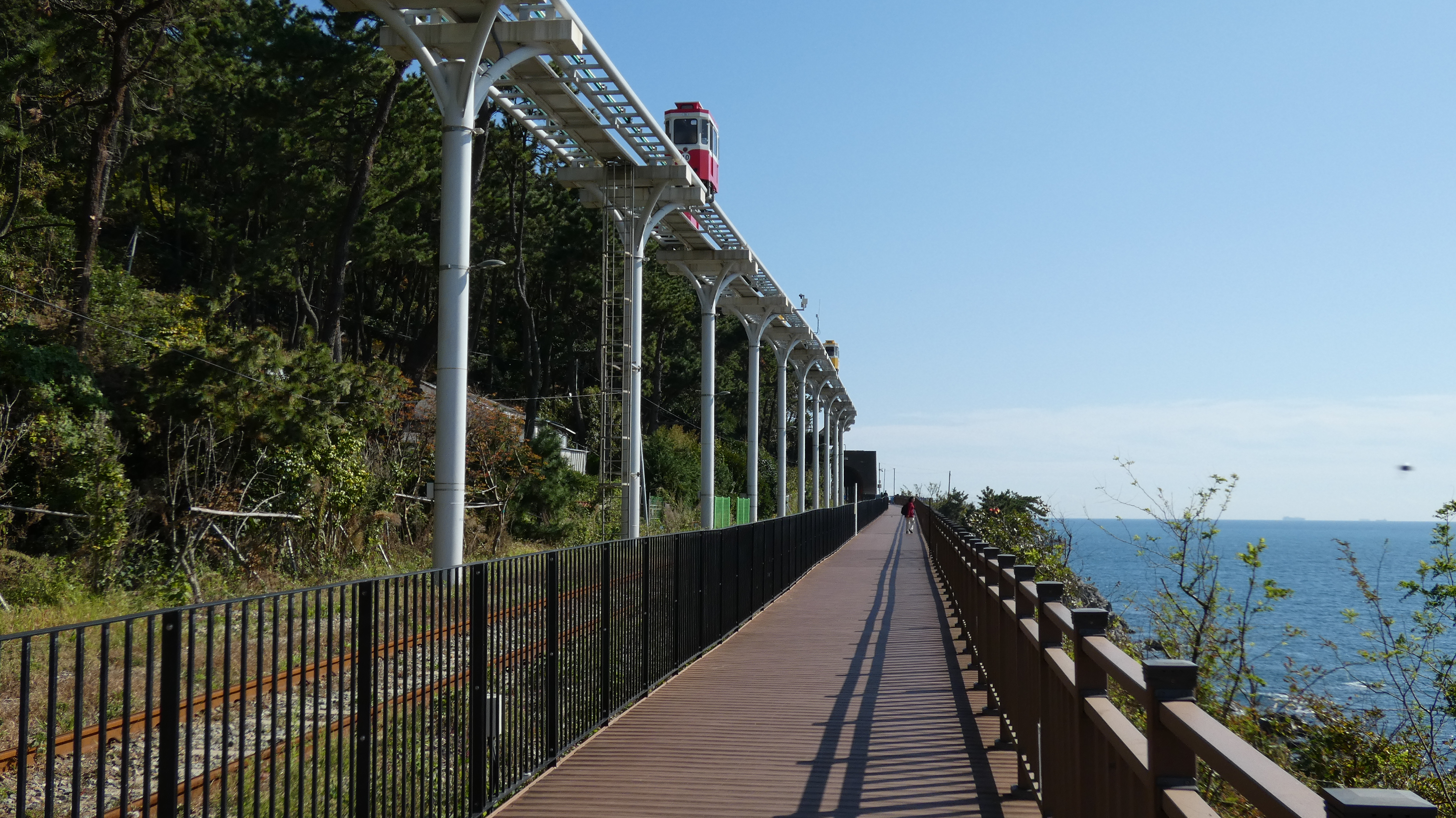 이제는 완전히 공사를 마치고 미포항 근처에서부터 옛 동해남부선 철길로는 해변열차를 이용하여 송정항까지 다녀올수 있고 그곳에서 스카이캡슐이라고 이름 지어진 모노레일을 이용하여 청사포까지 다녀올수 있습니다.