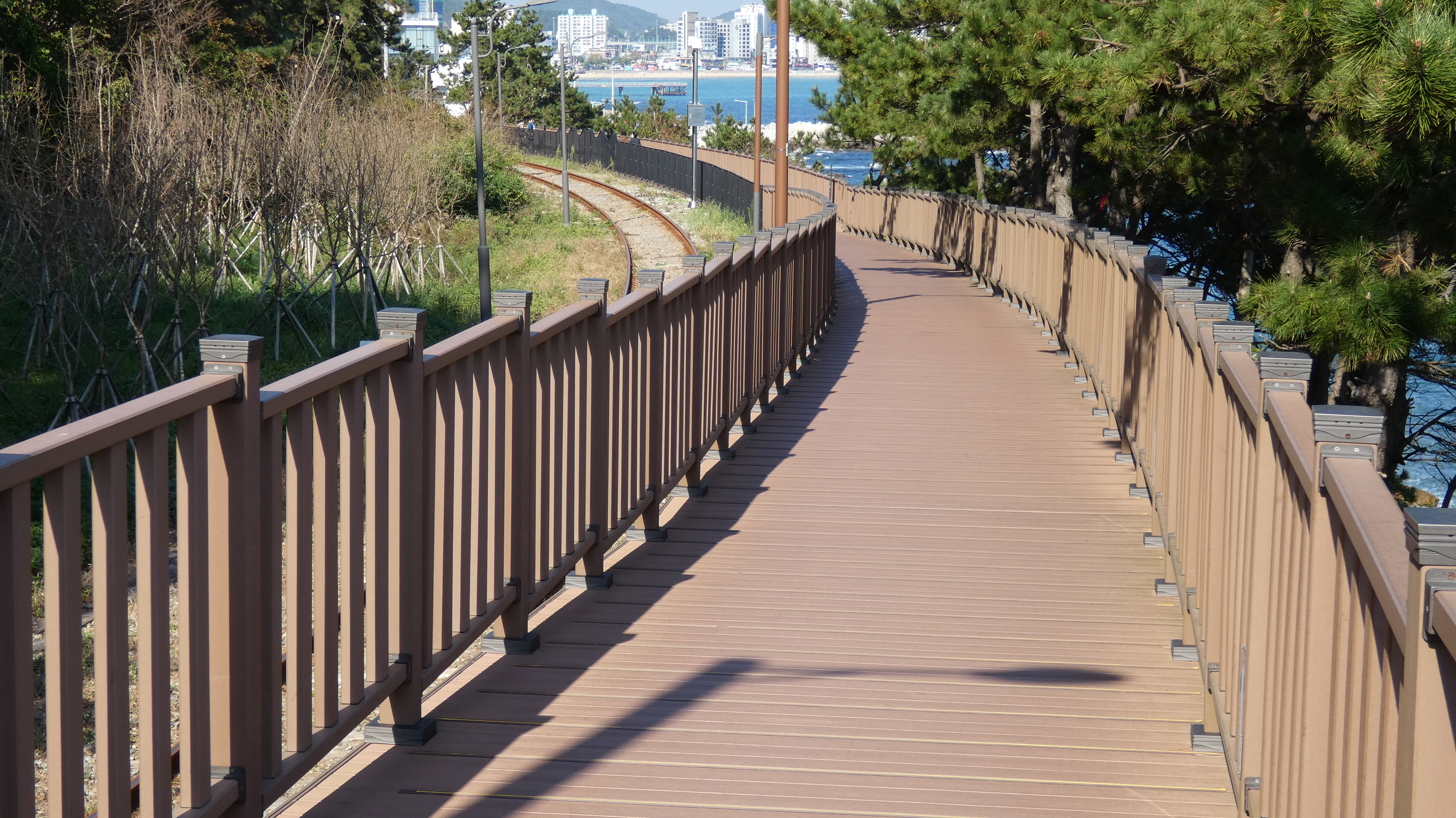 2020년 5월에 갔을때 당시는 청사포항까지 모노레일 공사와 함께 옛 철길 보수공사 그리고 해안도로의 편의시설 공사 중이라 통행금지였지요. 때문에 그때는 철길을 따라 갈수 없었기에 문텐로드 시점부터 청사포항까지 시야도 좋지 않은 숲길을 그냥 갈 수밖에 없었습니다.