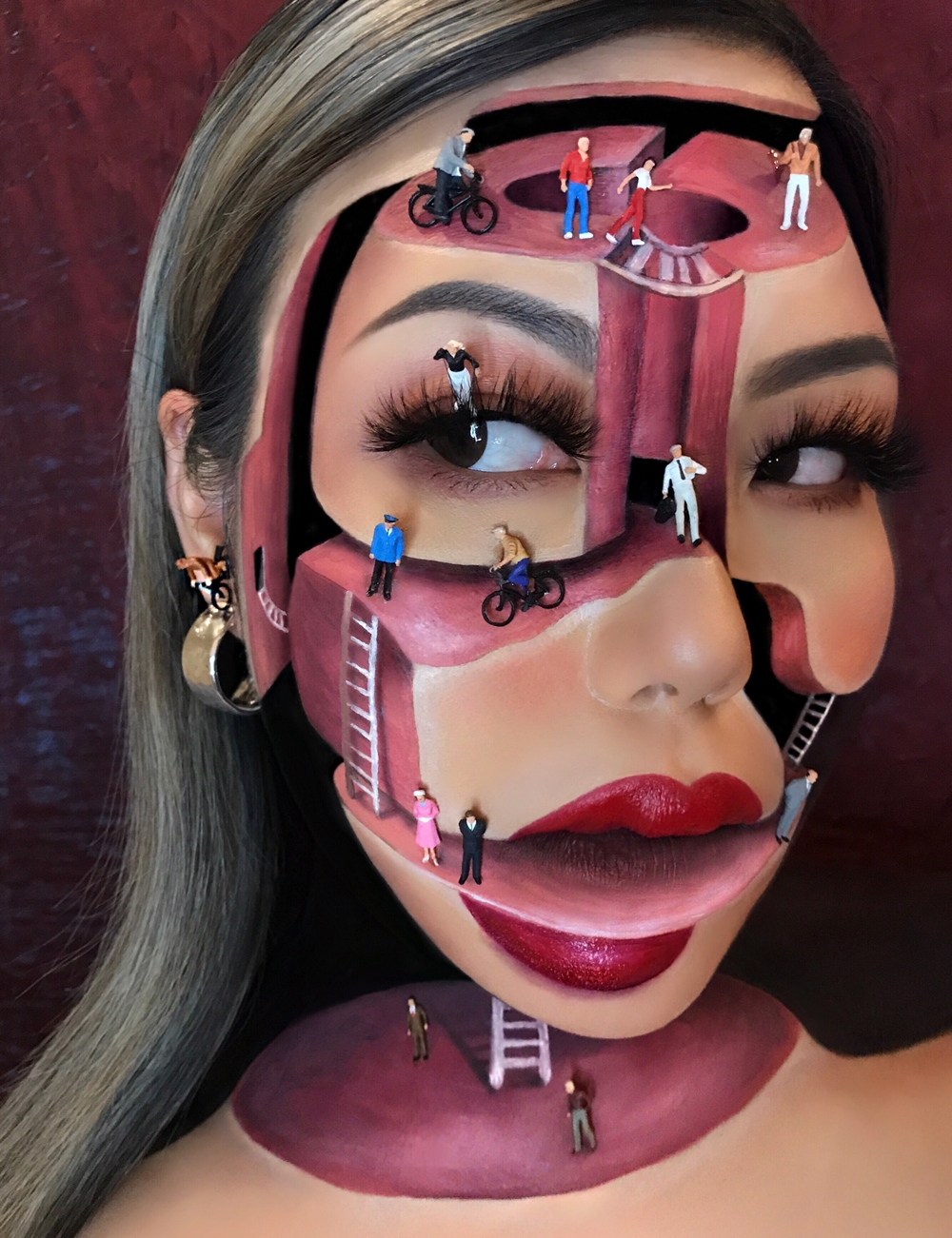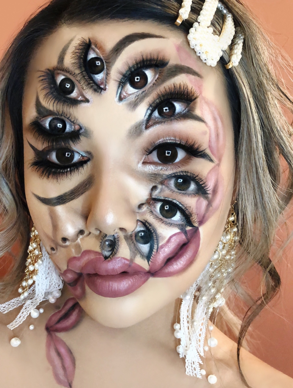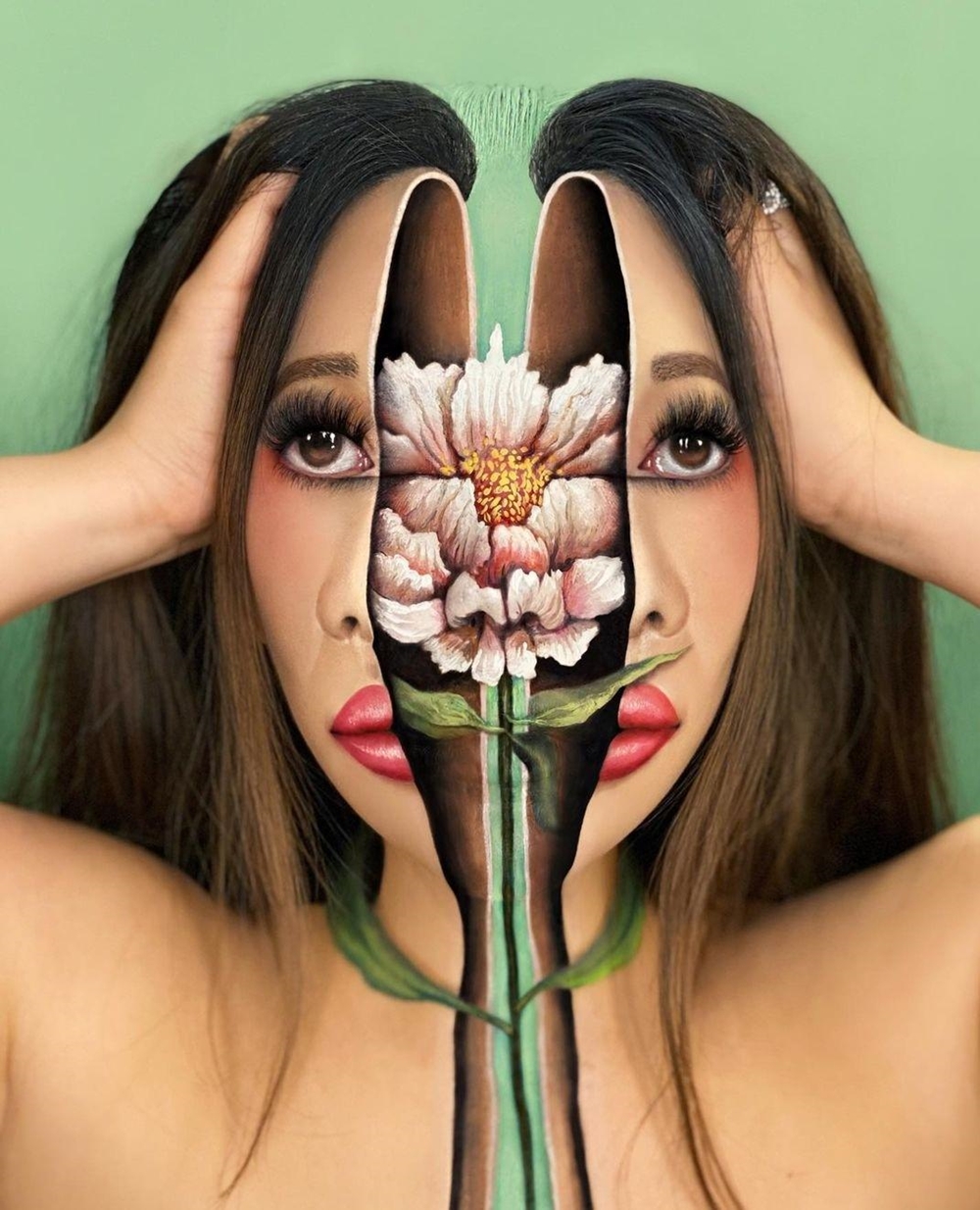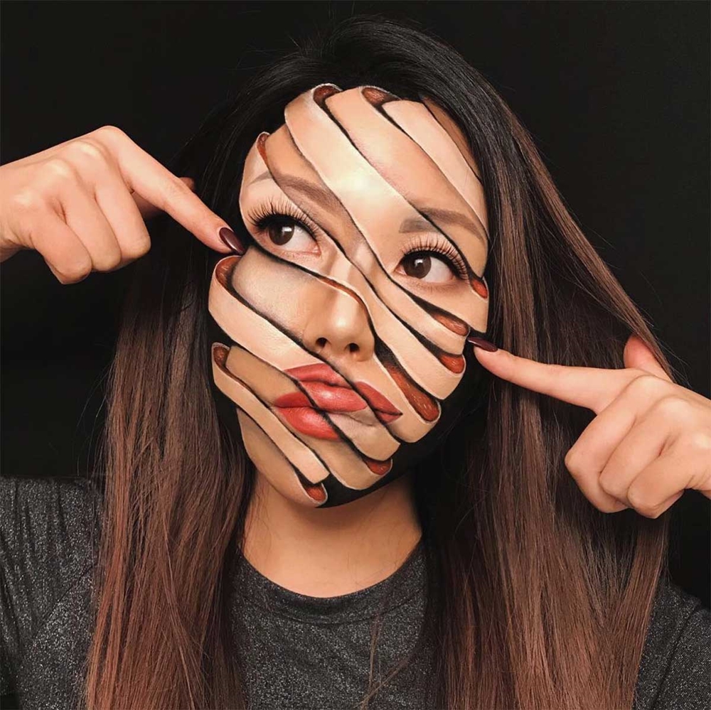 해외 웹 사이트에 자주 소개되는 최미미(Mimi Choi)의 착시 메이크업 사진입니다.