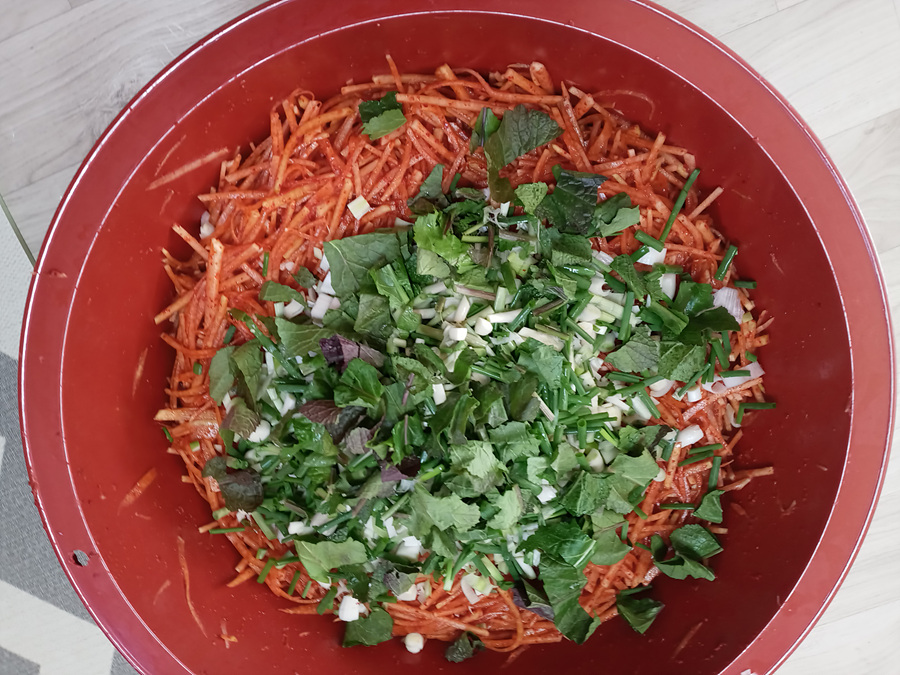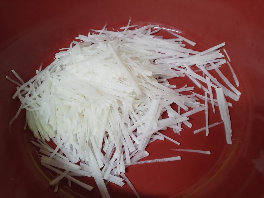 제일 힘들고 벅찬 무 채썰기.. 삐뚤빼뚤,.. 굵고 너무 가늘고~^^