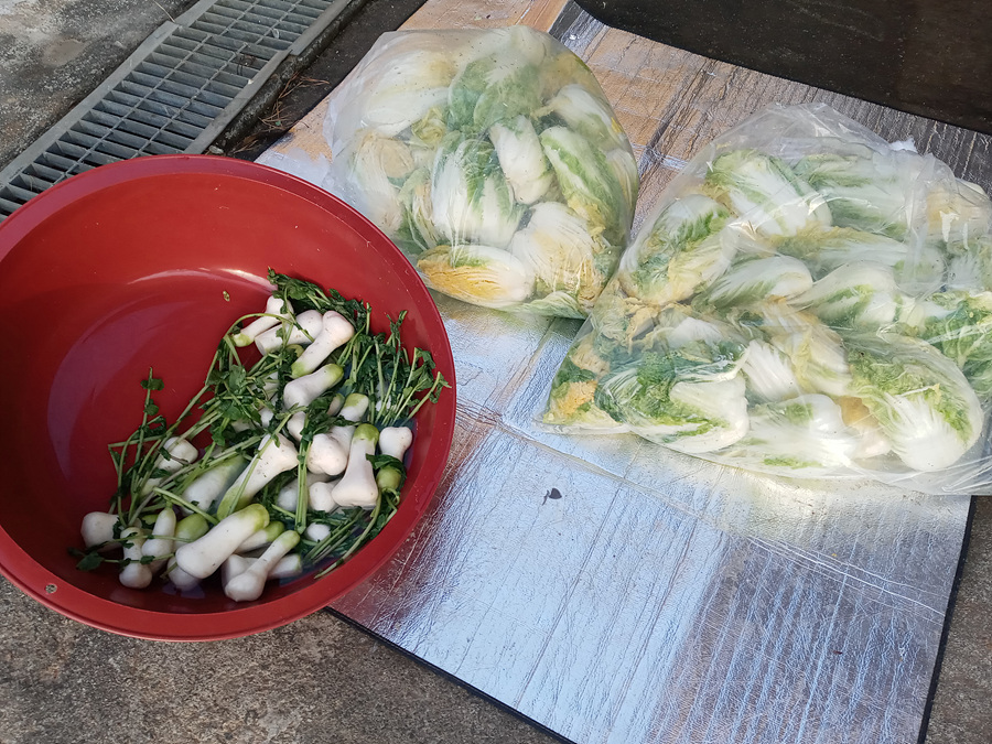 감사하게도 동네 어르신들 몇 분 께서 밭에 배추와 무가 남으니 맘 편하게 가져가라고 하시더군요.