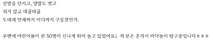 요즘도 야외에 나가면 양말하고 신발부터 벗어 버리고 뛰어놀아요'