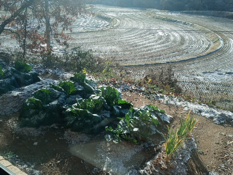 얼은 배춧잎으로 배추전을 해도 맛있다는 어르신들 말씀에 맘 편하게 방치하고 있습니다.