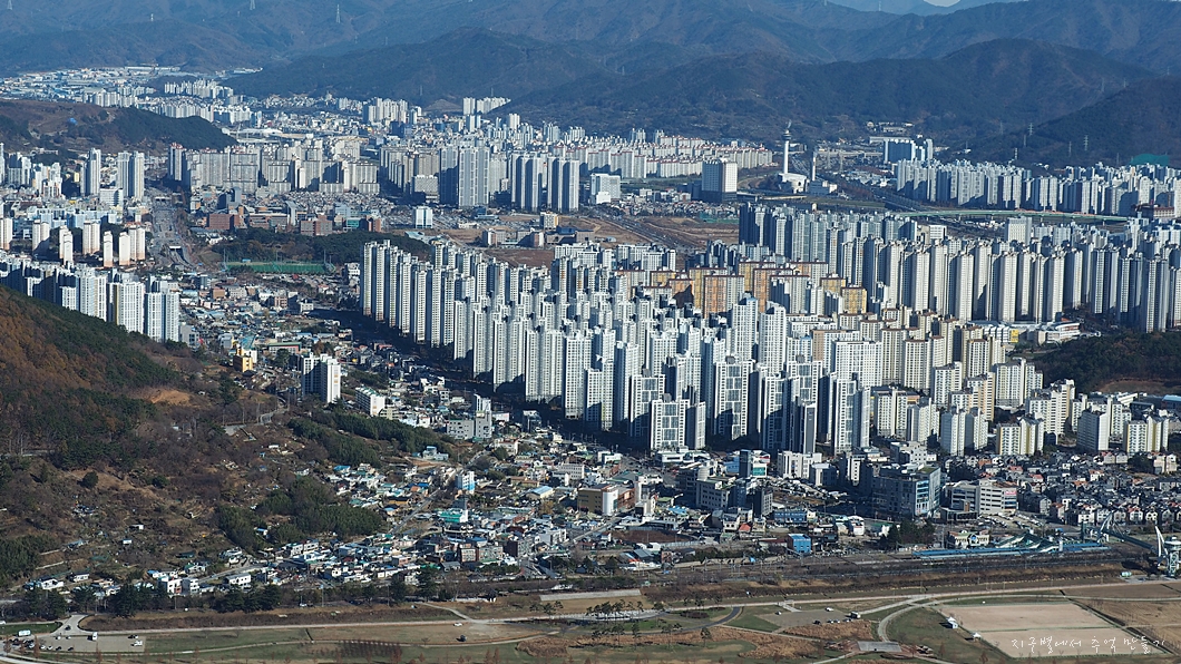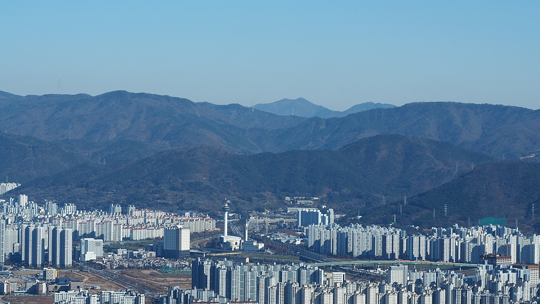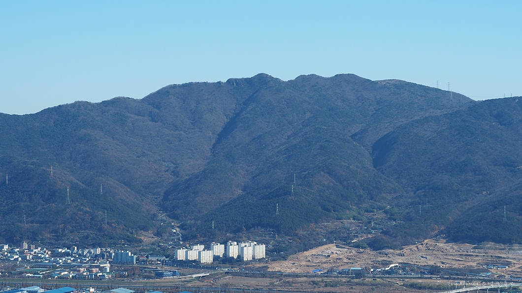 양산타워 뒤로 멀리 대운산이 솟아 있네요.