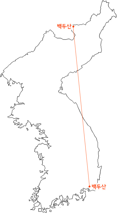 북의 백두산과 김해 백두산 경도 비교입니다.