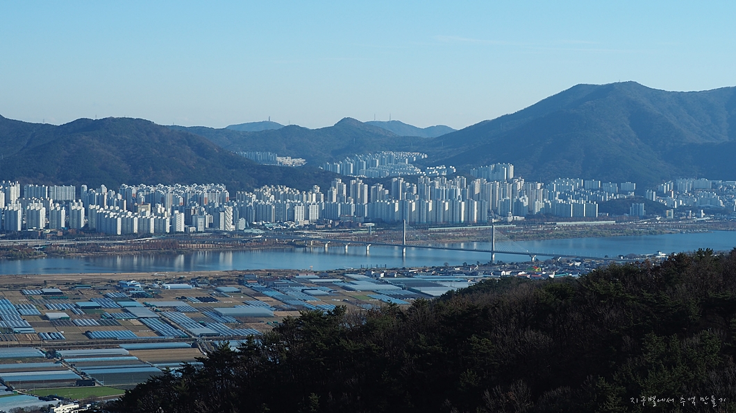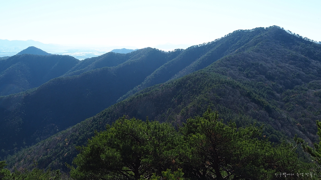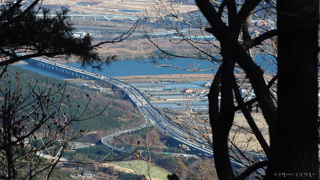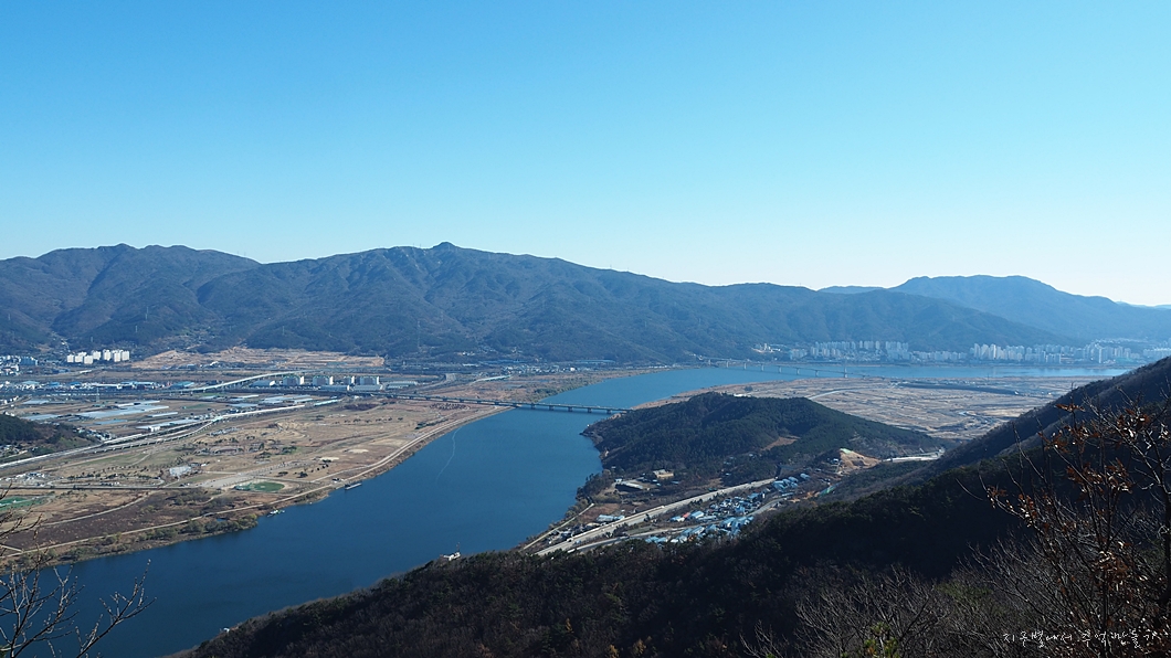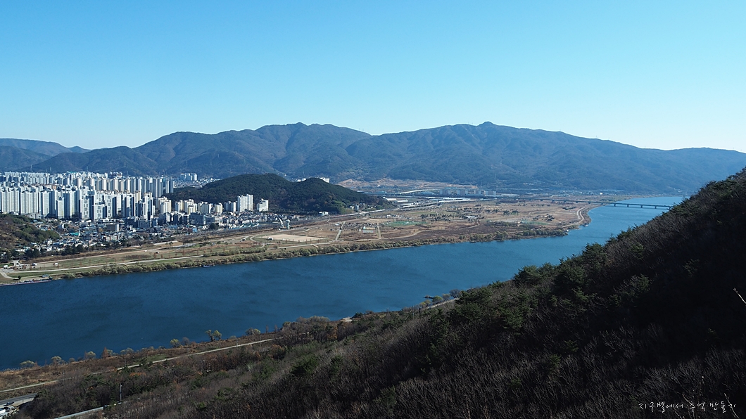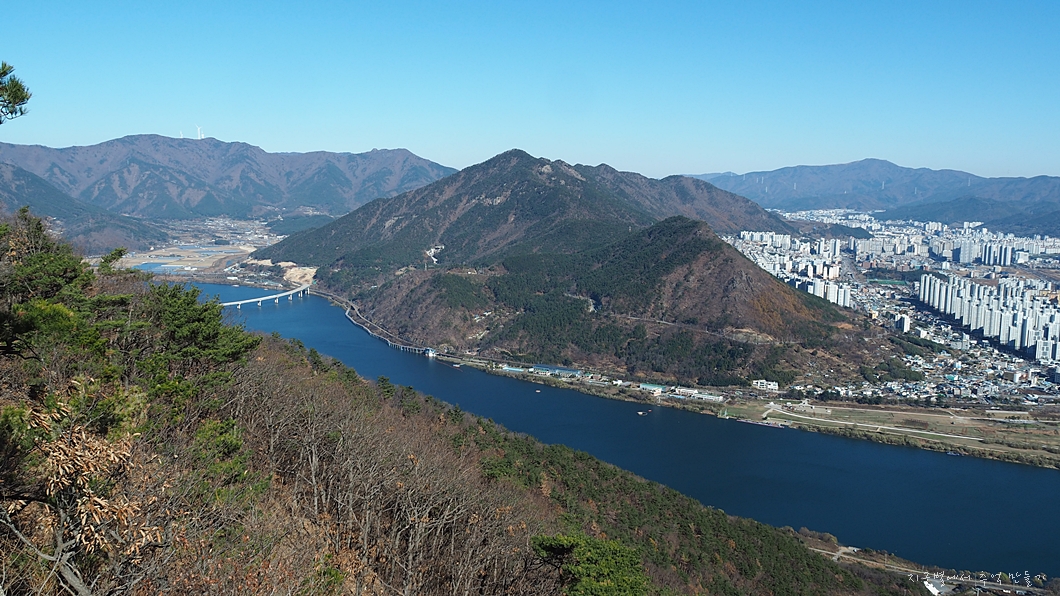 여러 개의 봉우리들로 업다운이 많고 참나무 낙엽이 무릎까지 빠져 걷기 불편했지만 좌측으로 보이는 낙동강 풍경이 가슴을 탁 트이게 만드네요.