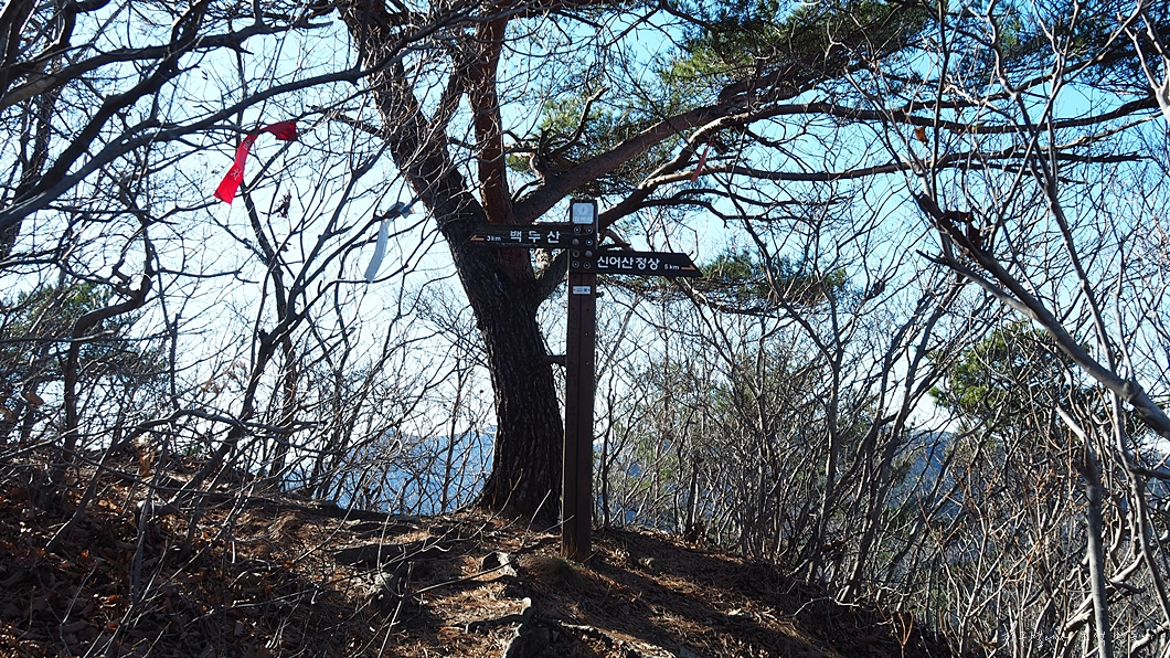 산행은 김해 상동면 소감마을 입구 도로변에 주차를 해 놓고(이곳) 맞은편 소감마을 도로를 따라 들어가다가 고속도로 교각 아래에서 좌측 위 현대개발이라는 레미콘 공장 마당으로 올라가면 고속도로 우측 옆으로 동신어산 안내판이 보이고 계단을 올라 배수로를 등산로로 생각하고 안부까지 오르면 우측으로 산길이 보입니다. 이곳부터 백두산까지는 거의 직진 코스로 가면 되구요.