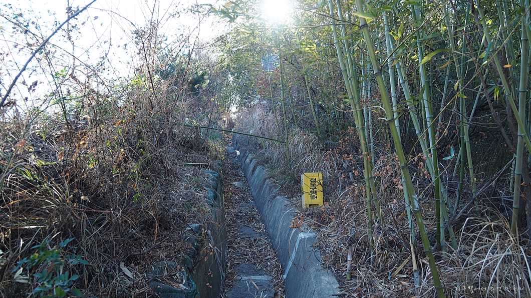 배수로가 길게 이어져 있는데 이곳을 따라 언덕 위까지 오르면 우측으로 등산로가 뚜렷하게 보입니다.