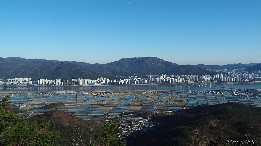 조금 고개를 좌측으로 돌리면 멀리 김해 무척산이 뒤편에 자리하고 있습니다.