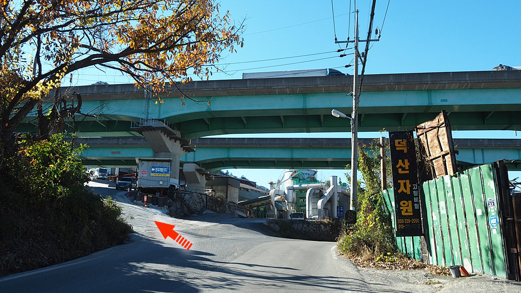 100여 m 도로를 따라 들어가면 대구~부산 고속도로가 지나가고 그 아래에서 좌측으로 오르면..