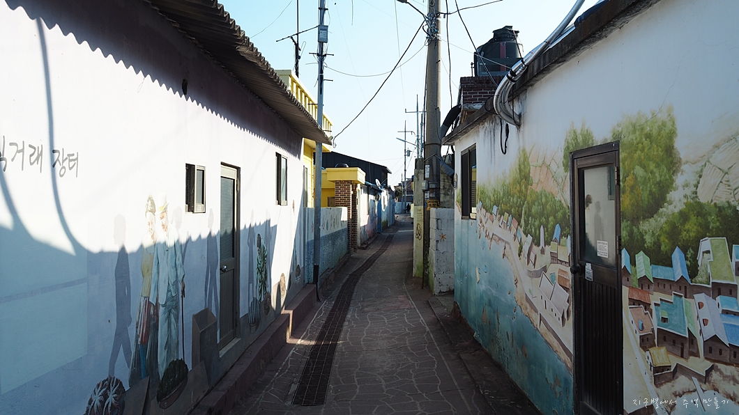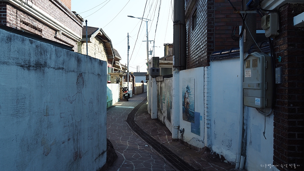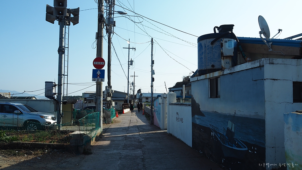 눌차도는 외눌마을, 내눌마을, 항월마을, 정거마을로 되어 있는데 이 중 정거마을은 마을 담에 벽화가 그려져 있어 제법 유명세를 타는 곳입니다. 외눌과 내눌마을길은 아주 협소하여 운전에 유의하여야겠네요.