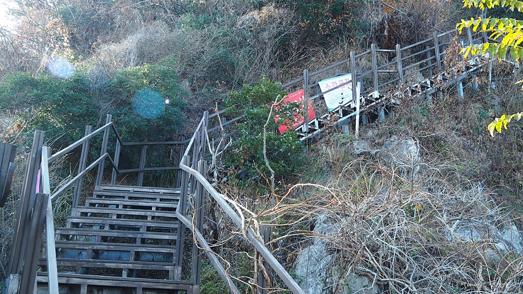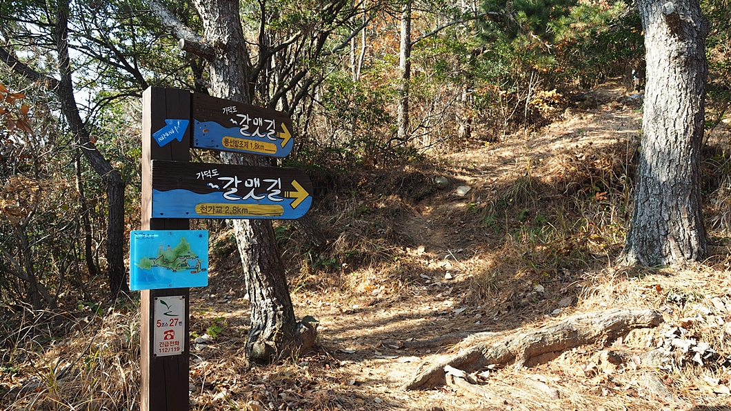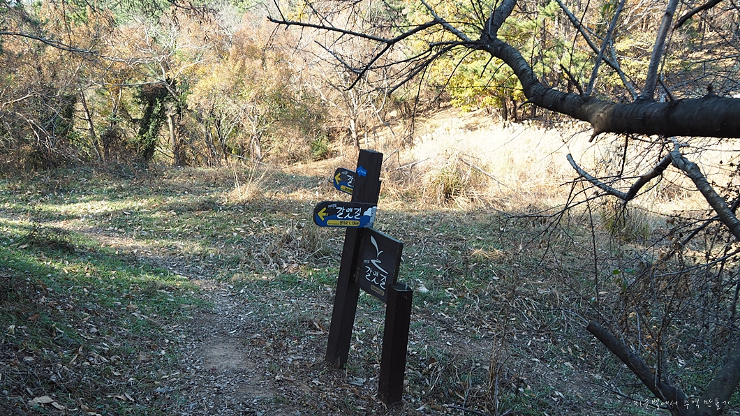 기존 갈맷길은 좌측 길인데 이곳에서 안내 표시가 없는 우측으로 내려갑니다.