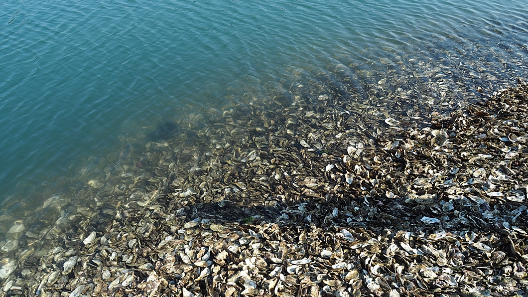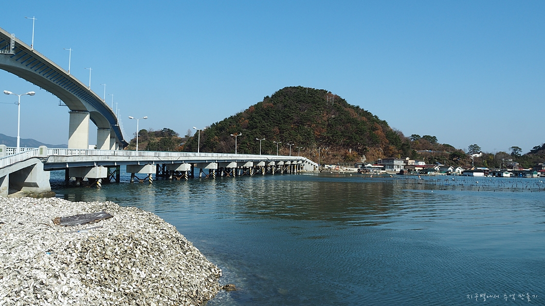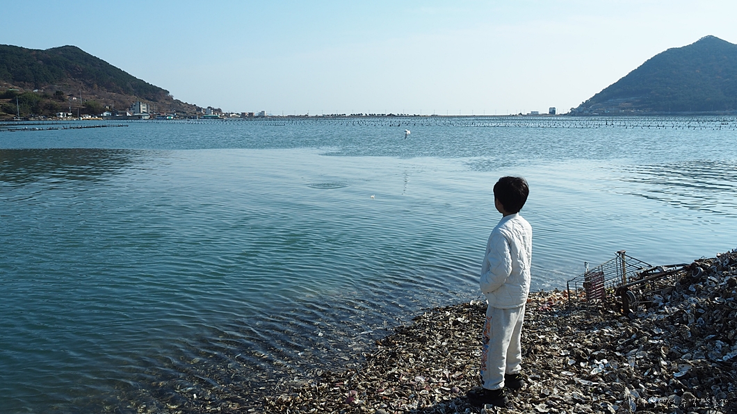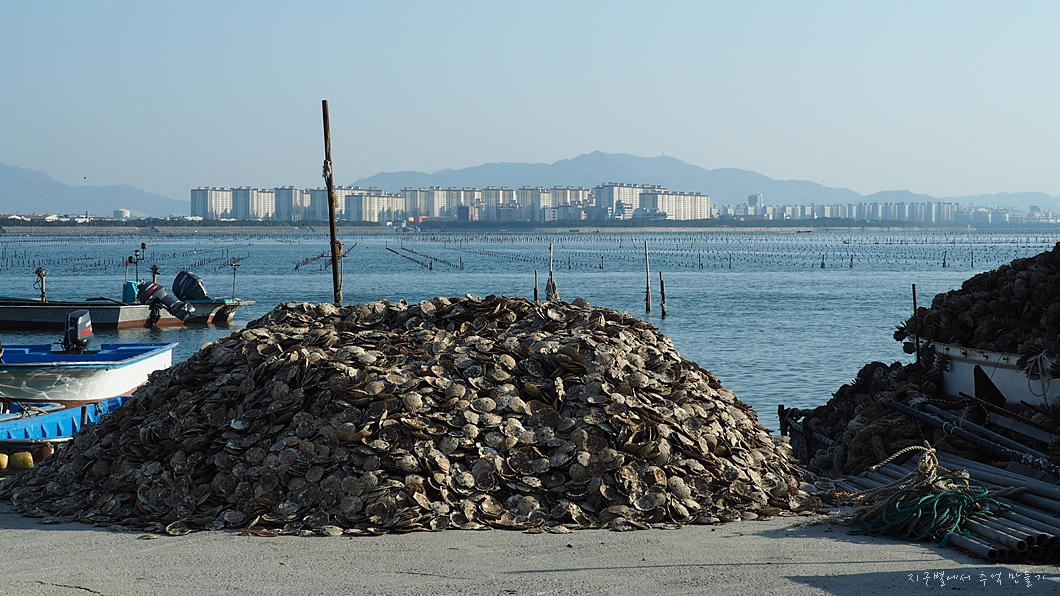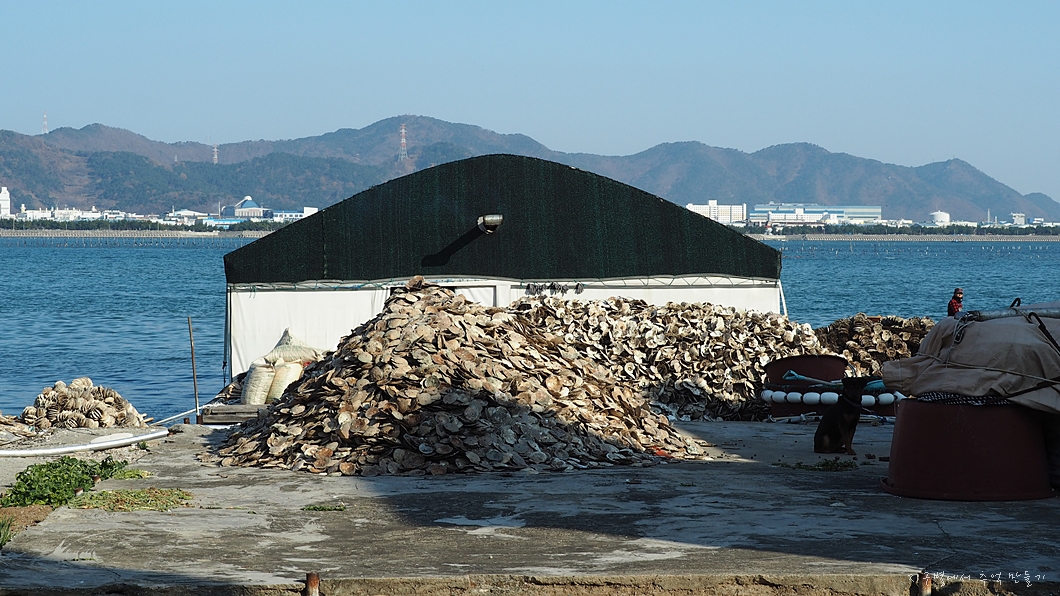 바닷가에는 온통 조개껍데기. 굴 껍데기.