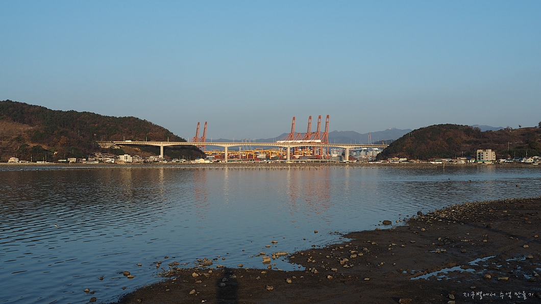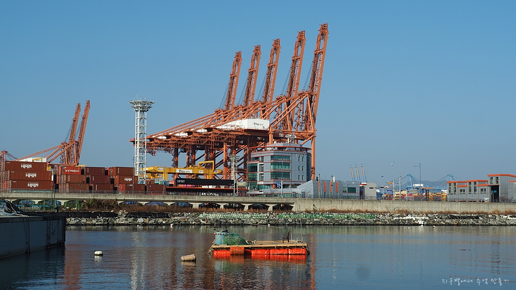 눌차만 건너 신항은 오늘도 분주합니다.