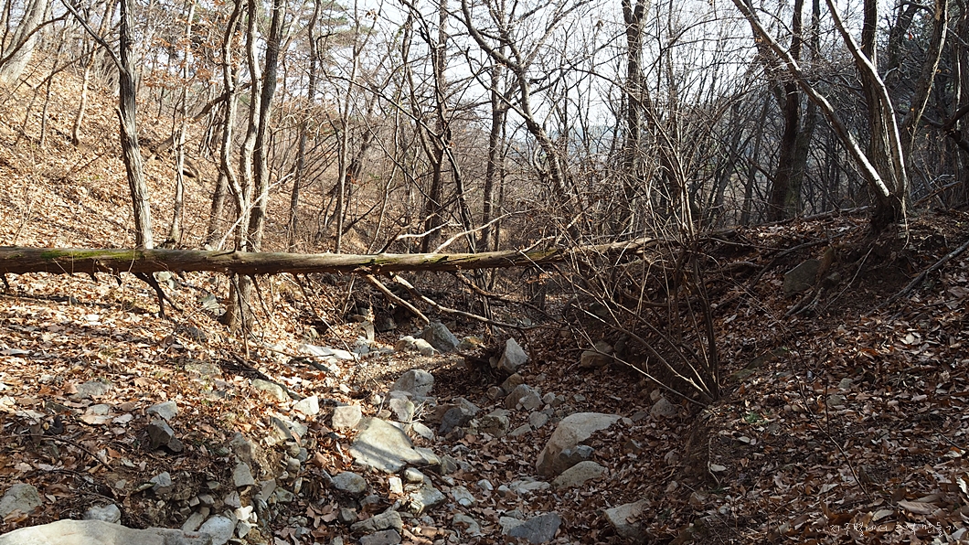 개울 위에 쓰러져 있는 나뭇가지를 와나무다리라고 생각하여 한번 건너볼까 하다가.. 관둬라. 다친다.