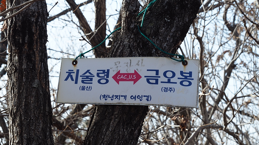 경주 좋을라고산악회에서 세운 안내판인데 한쪽 방향 표시는 뜬금없는 '울산'