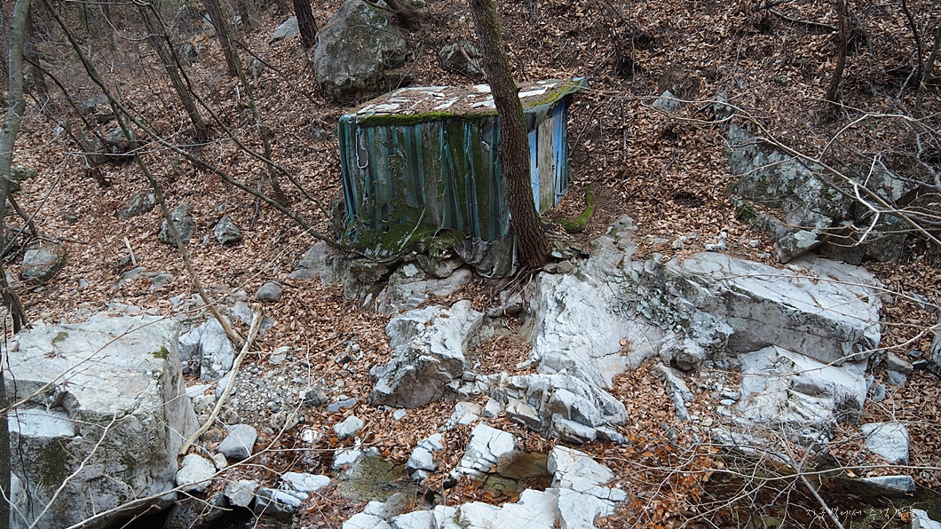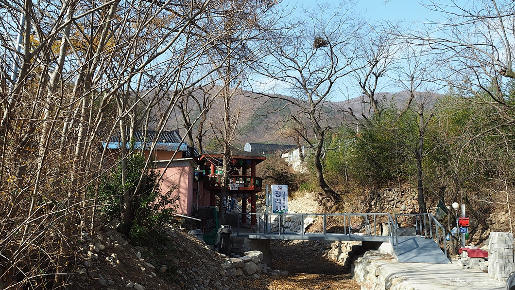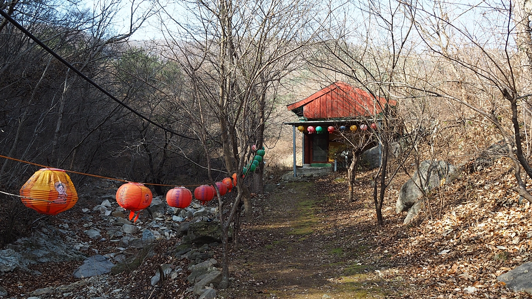 들머리인듯한 길을 따라 개울 옆으로 올라가니 문이 닫혀 있는 암자가 나타납니다.