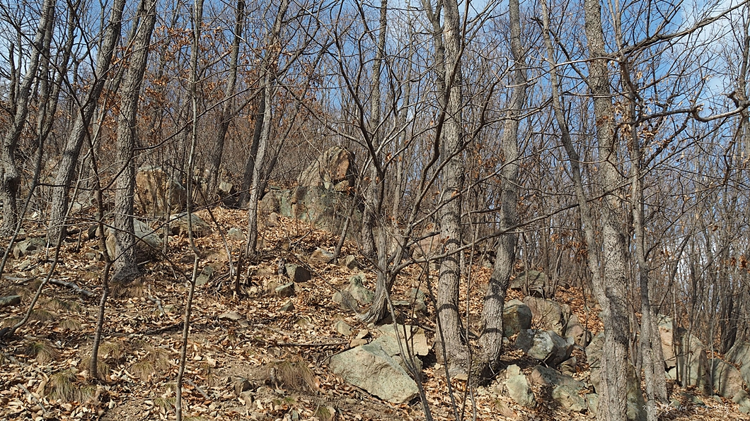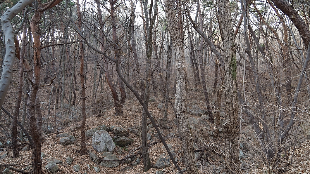 조기까지만 올라가면 트이겠지.. 뭔가 보이겠지 하면서 악전고투 급 경사길을 잡목 헤치고 오르는데..