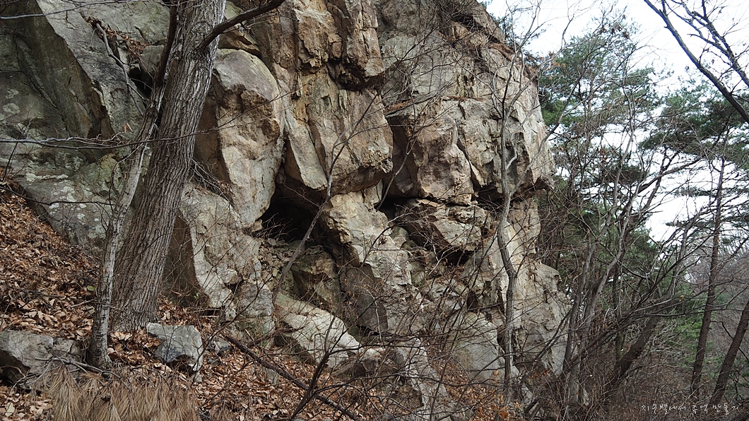 곧 붕괴될듯한 커다란 바위가 있고