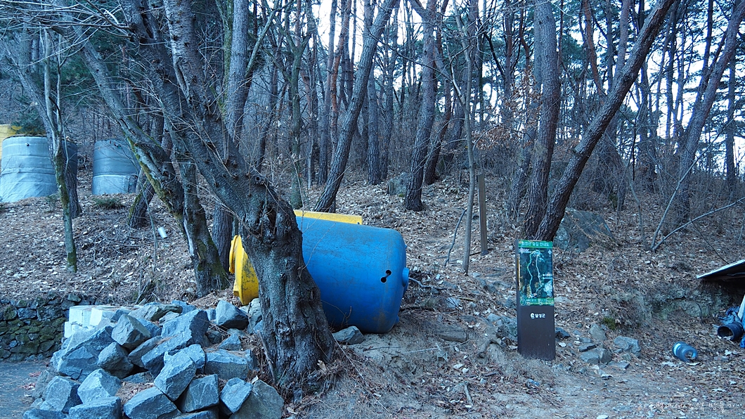 한쪽에 운흥사로 내려가는 표시판에 세워져 있는데 그곳으로 내려가면 됩니다.