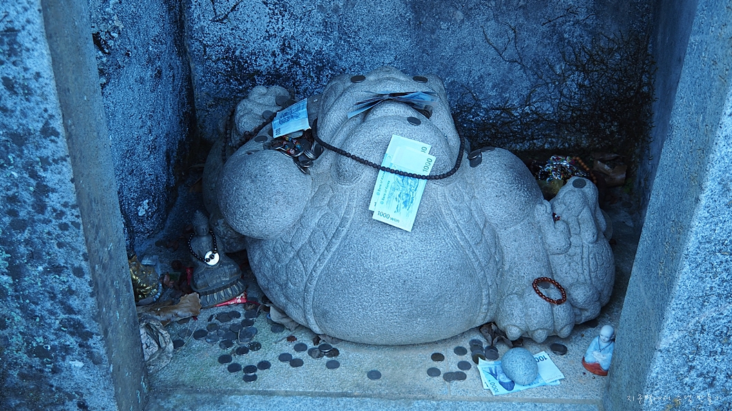 배바위 가기 전 작은 배바위 비슷한 게 있는데 이곳부터 기도하는 이들의 소지품들이 보이기 시작합니다.