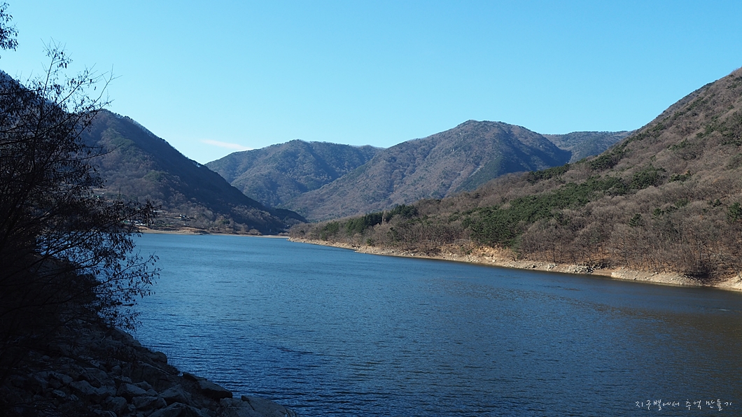 맑은 물로 키운 미나리깡이 있는 정대계곡에서 흘러 내려오는 물을 막아서 만든 댐인데 대구 수성구 지역의 상수원이 되기도 합니다.