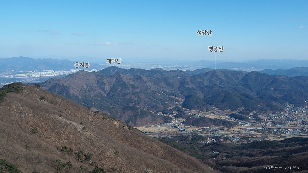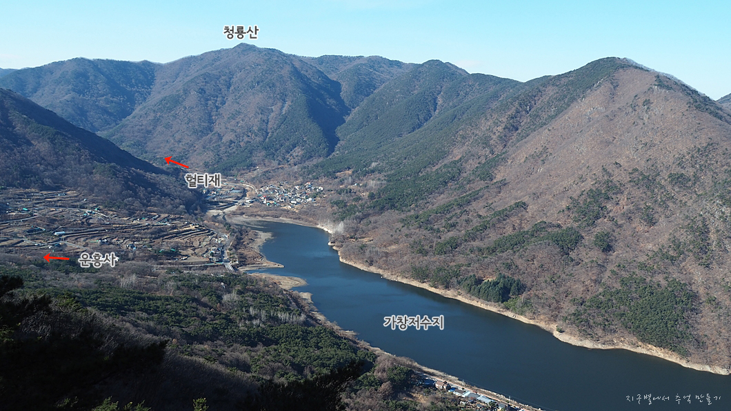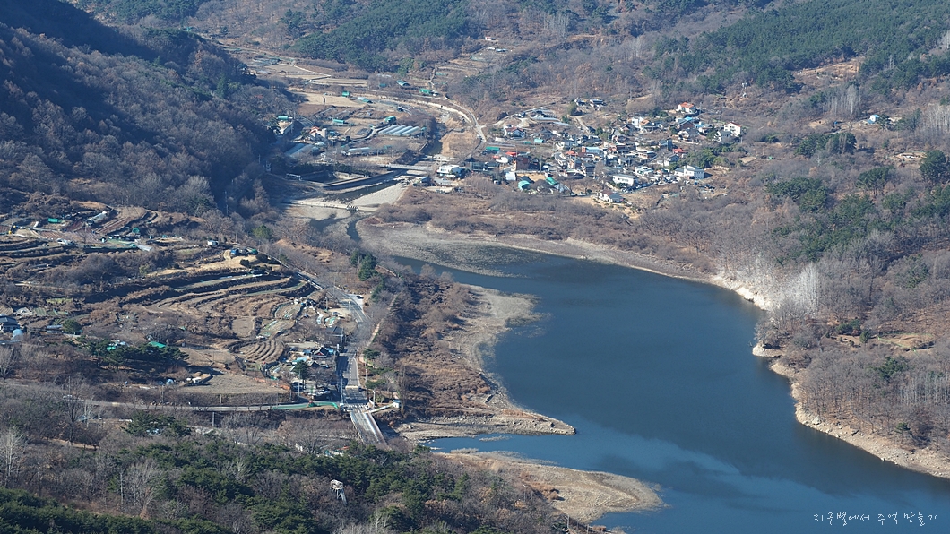 청룡산이 마주 보고 있고 아래로는 가창저수지가 내려다 보이네요.