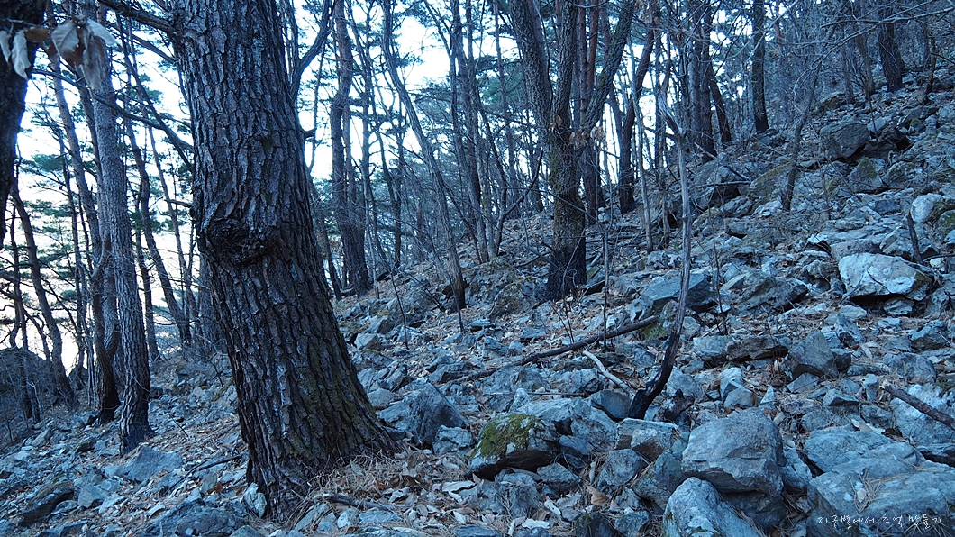 운흥사로 내려가는 길은 급경사에 너덜길이 많아 조심해야 합니다.