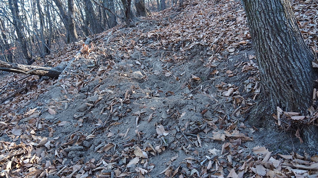 아직 얼지 않은 땅을 멧돼지들이 뿌리 캐 먹는다고 이곳저곳 파 뒤졌네요.