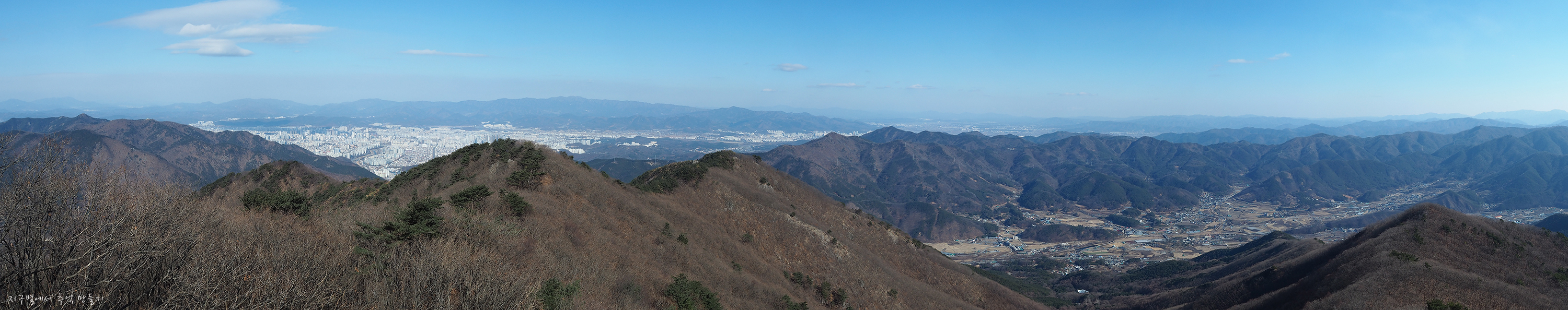 팔공산이 병풍처럼 둘러쳐진 팔공산 자락과 그 앞의 대구 시가지.