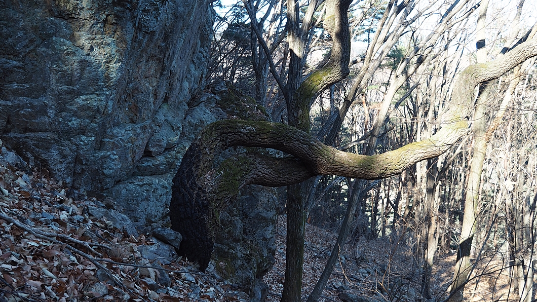 옥낭각시 베짜는 바위 아래에는 이처럼 묘하게 비틀고 있는 참나무 한그루가 있구요.