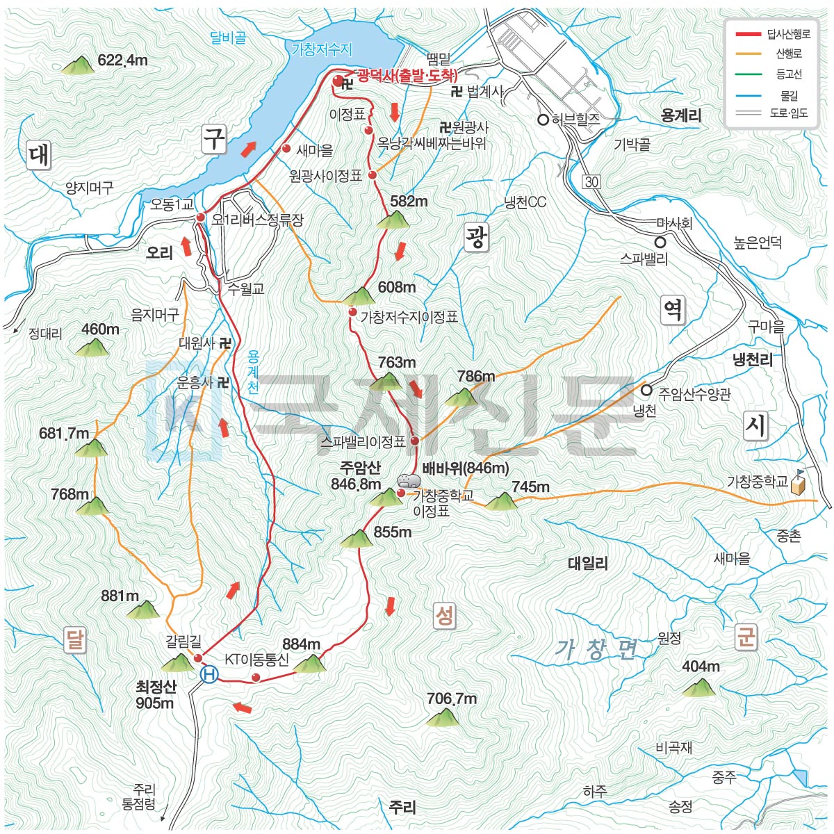 주암산 최정산 산행 지도