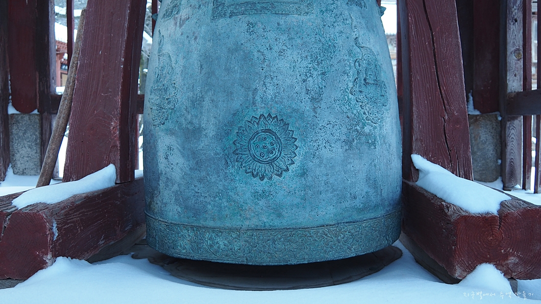 범종은 절의 우측 편에 따로 매달려 있고 이곳은 나라의 보물인 동종을 보관하는 곳이라 하여 보종각.