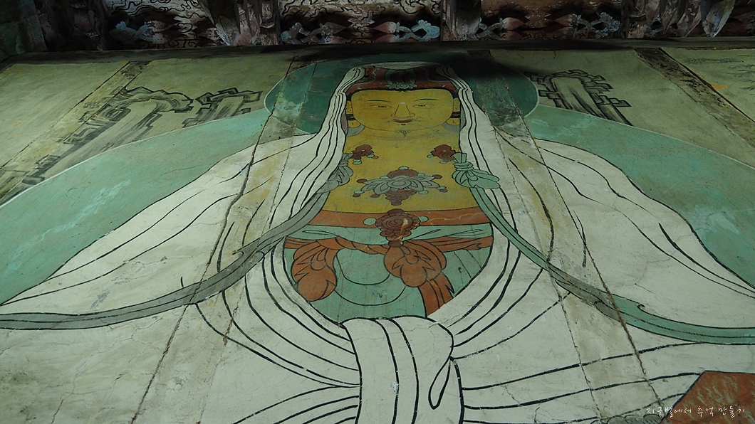 본존불 뒤편에 있는 그 유명한 내소사의 관음보살 벽화.