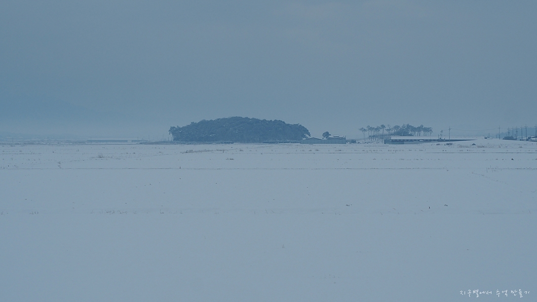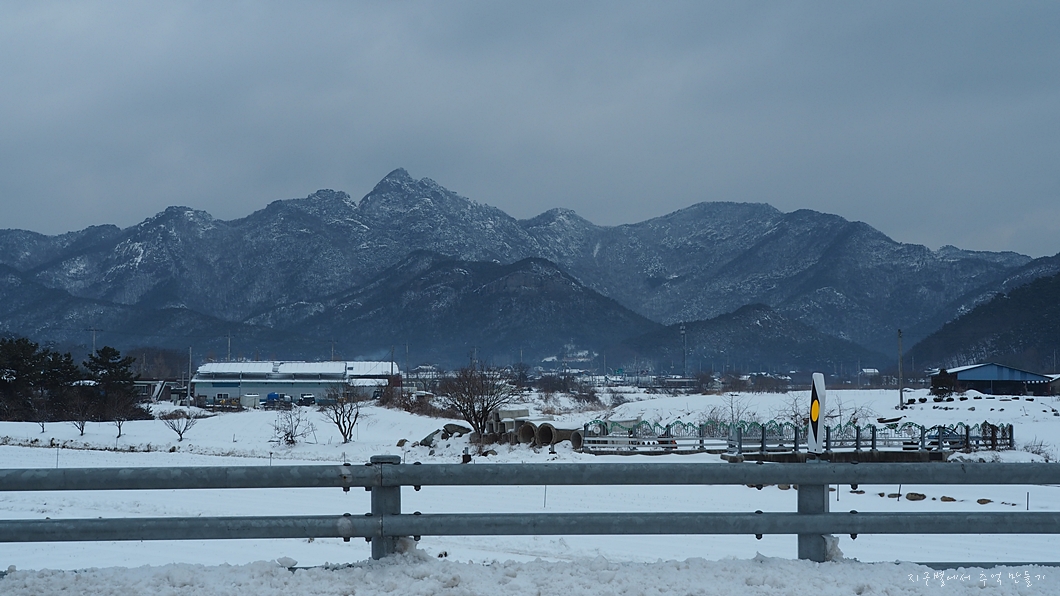 하얀 눈들이 얕은 산을 덮어서 포근하게 보여 집니다.