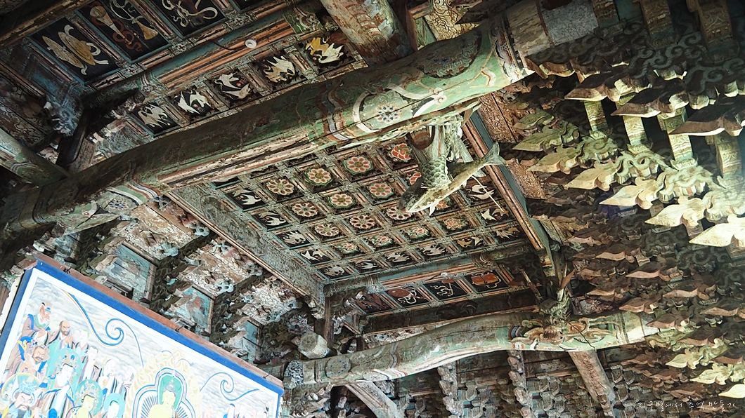 내소사 들려서 꼭 봐야 하는 게 여려가지가 있는데 이곳도 그중 하나인 대웅전의 천정.