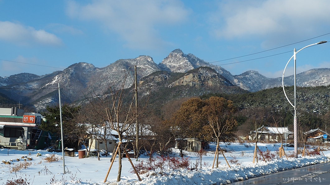 쏴한 추위가 대기에 가득 하지만 산빛에 붙어 있는 햇살은 밝게 보입니다.