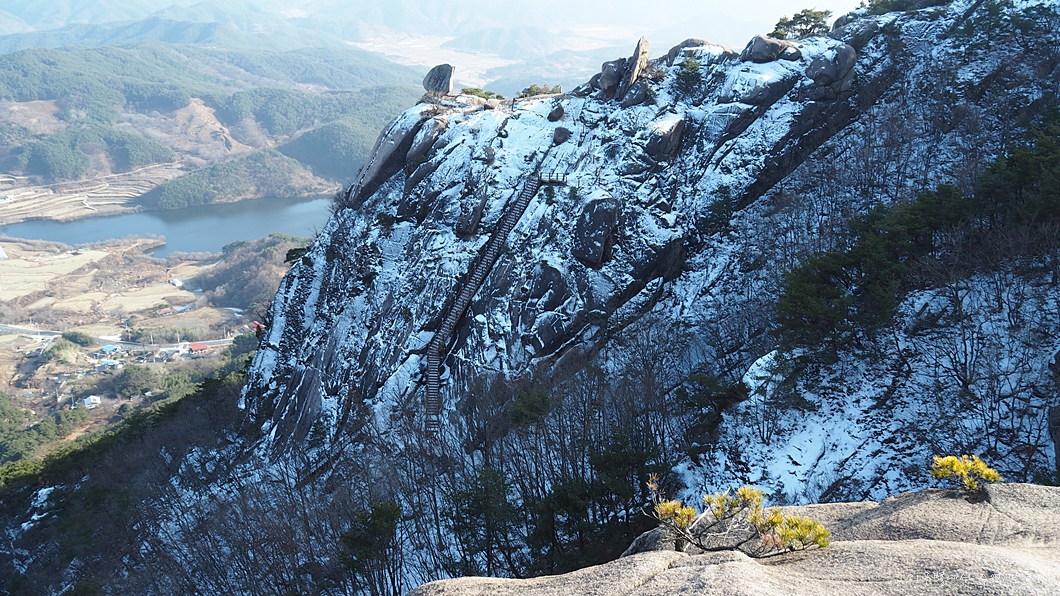 세 번째도 무사히 올랐는데 내려가는 길이 얼어서 도저히 불가..