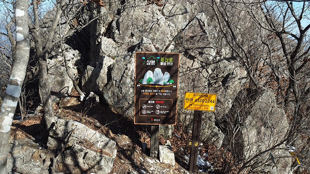 바위 봉우리를 몇 개 넘어서 삼봉 입구 도착.
