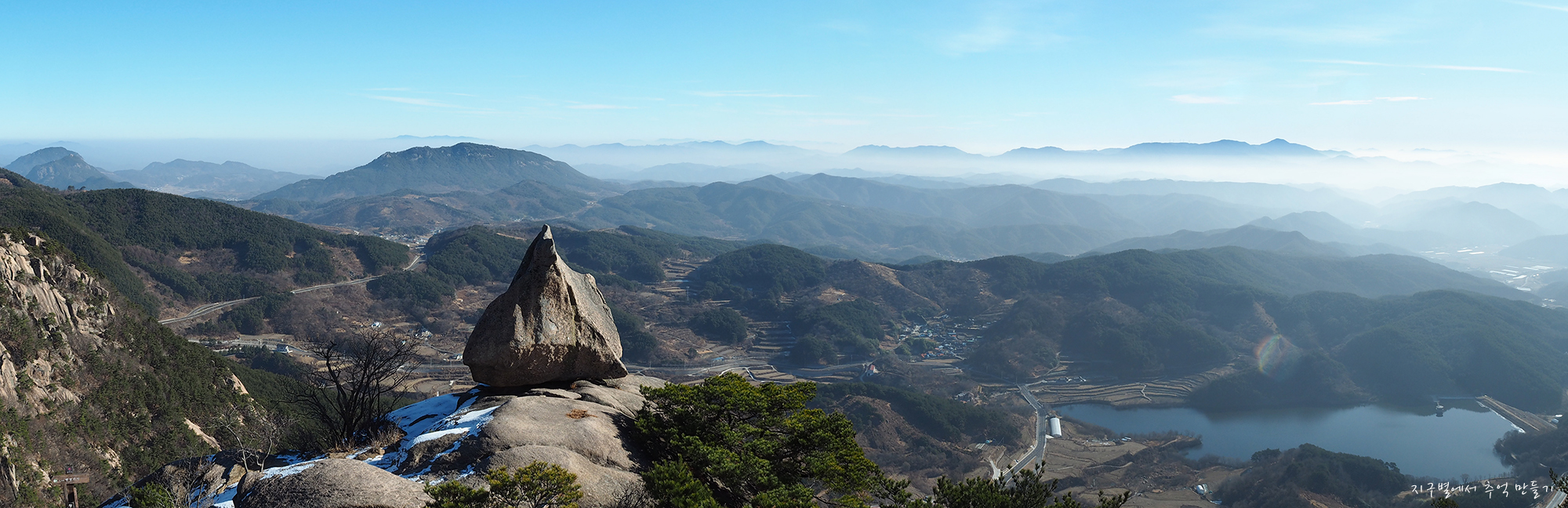 좌측으로 대병 3 산중 하나인 금성산이 보이고 그 우측으로 악견산이 살짝 솟아 있네요.